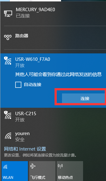 2. 電腦連接W610的wifi信號,會自動獲取一個10.10.100.xx的IP地址;