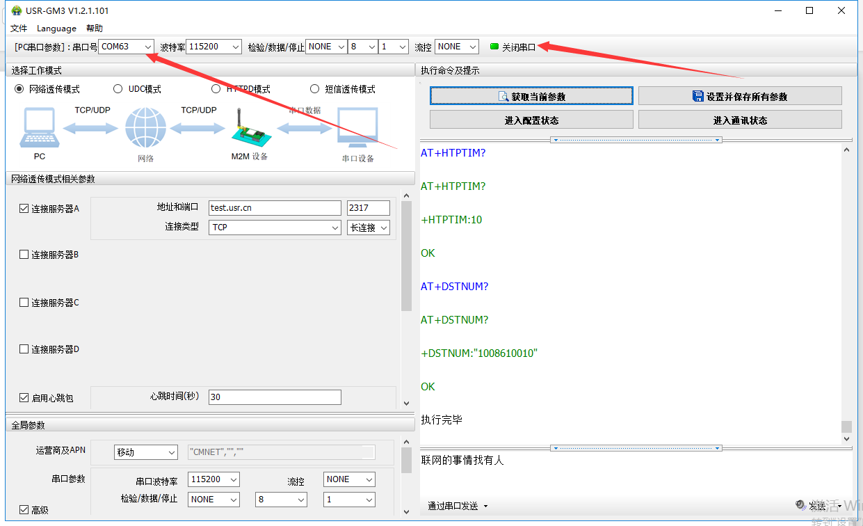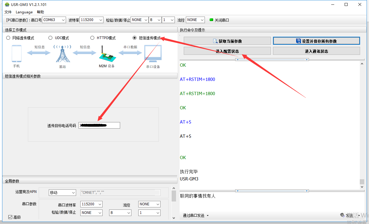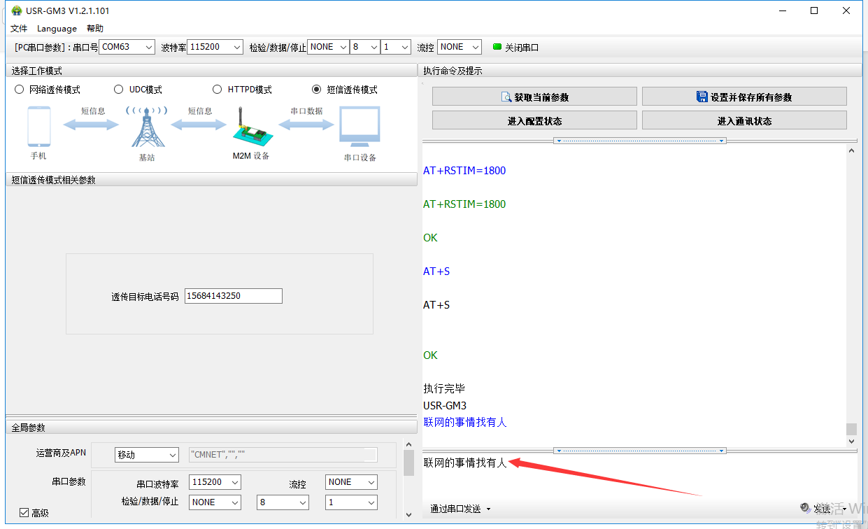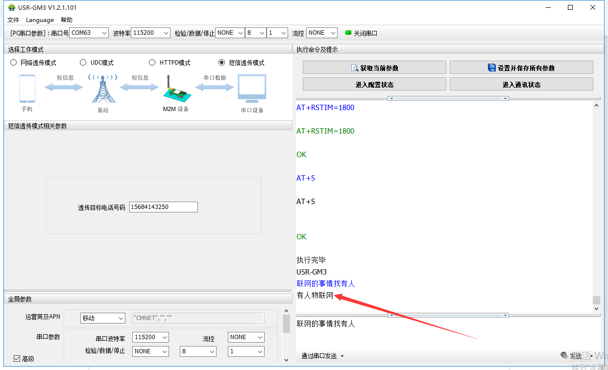 1. 短信透傳只適用與移動聯通的普通sim卡使用,物聯卡無法使用該功能。
