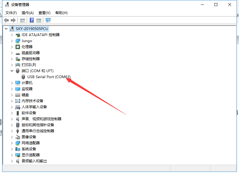 其中串口號(hào)可以在電腦的“設(shè)備管理器”中查看,見(jiàn)下圖;