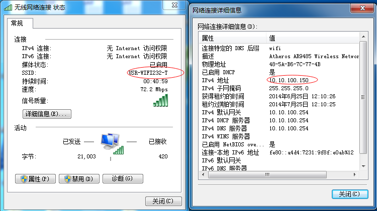 使用AT+WANN可以查詢到無線路由給模塊分配到的IP地址。通信地址就使用這個IP通信。以上網絡調試助手和虛擬串口軟件通信的IP都是以此IP為準。