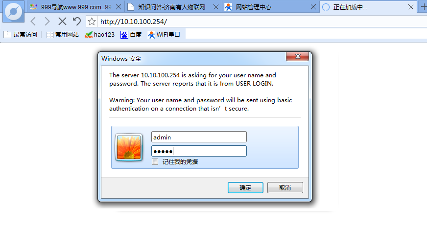 2:在瀏覽器輸入IP10.10.100.254.用戶名和密碼都是admin。