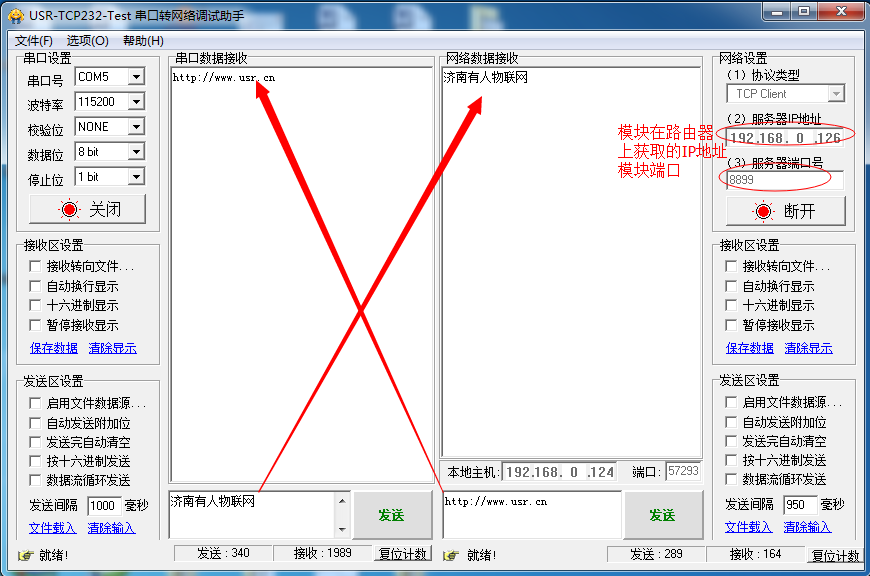 打開兩個串口調試助手窗口。