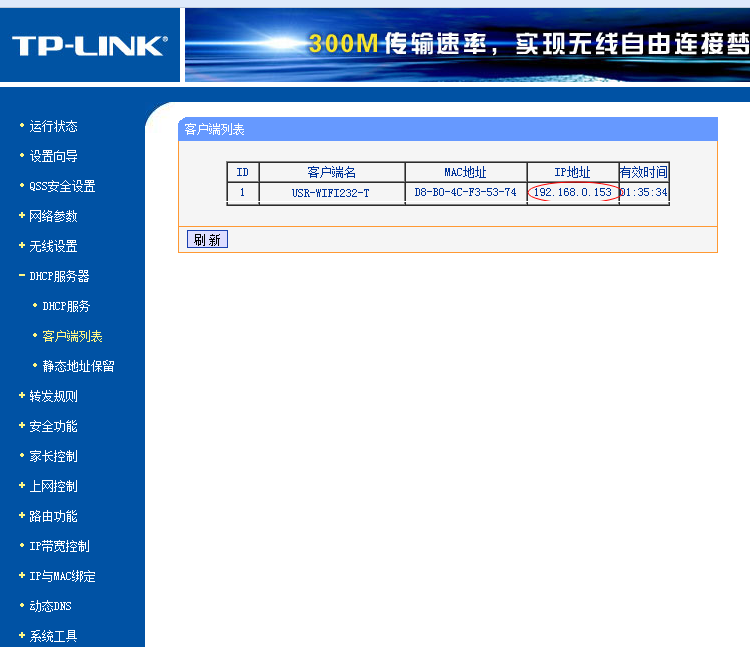 在路由器的路由客戶端列表查詢模塊分配的IP。
