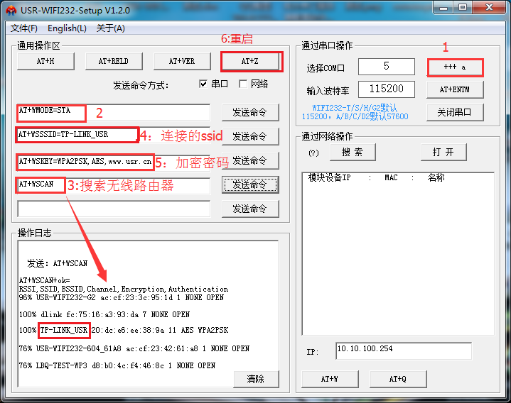 9:使用AT指令設置模塊加入路由器的步驟詳解:使用AT+WANN可以查詢到模塊獲取到的IP地址。通信地址就使用這個IP,該指令要在模塊設置以上指令重啟之后,再去使用這個指令才能生效。
