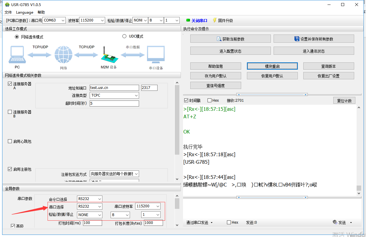注意:因為USR-G785的串口是端子接口的,232的九針或者九孔的串口線需要通過導線轉接一下