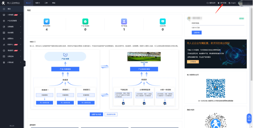 6、使用子賬號通行證登陸后可以在有人云控制臺看到主賬號分配的權限。