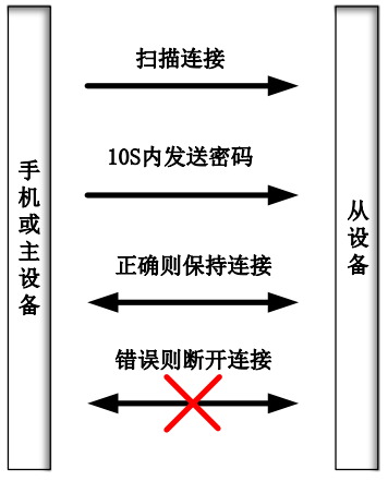 WH-BLE103 為保證設備的安全性,提供了密碼配對機制,此功能需要使用 AT 指令進行開啟,當此功能開 啟后,如果手機等設備搜索到該模塊并進行連接時,需要在 10S 內通過透傳 Service 的 Write 服務先寫入 6 位數 的密碼后才可以保持連接,并且進行數據的傳輸。如果密碼輸入錯誤或者超時都會將該設備斷開連接。如果使 用我們的主設備連接我們的從設備,只需要在連接建立后通過主設備的串口發送 6 位數的密碼后開始通訊。