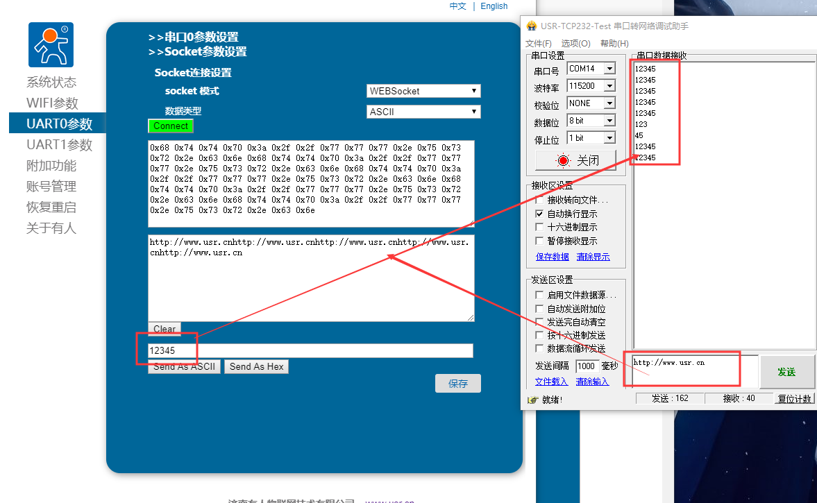 4. 從串口端發(fā)送數(shù)據(jù)到WiFi模塊網(wǎng)頁(yè)端