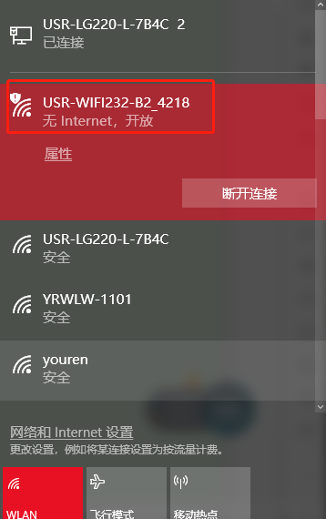 · WIFI串口服務器默認的SSID為:USR-WIFI232-B2_XXXX:(XXXX是WIF模塊MAC的后四位)