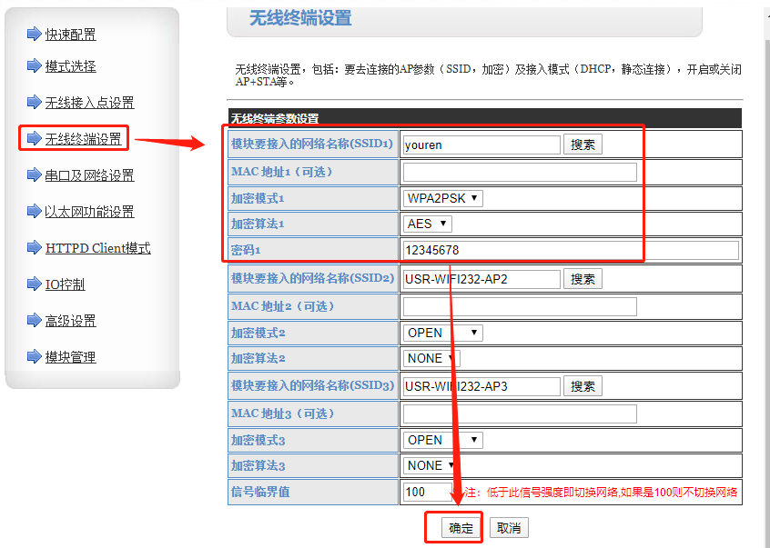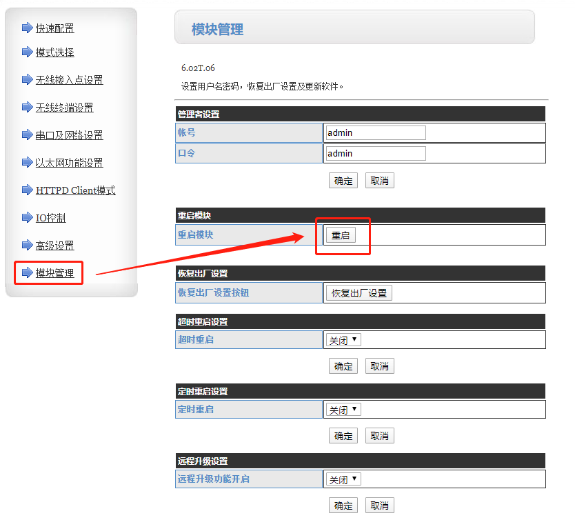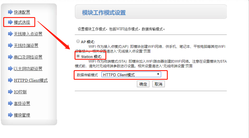 1. 電腦連接模塊的WiFi,輸入10.10.100.254進入配置網頁配置模塊