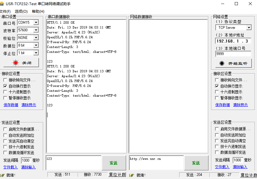 · WIFI串口服務器本身IP地址:10.10.100.254