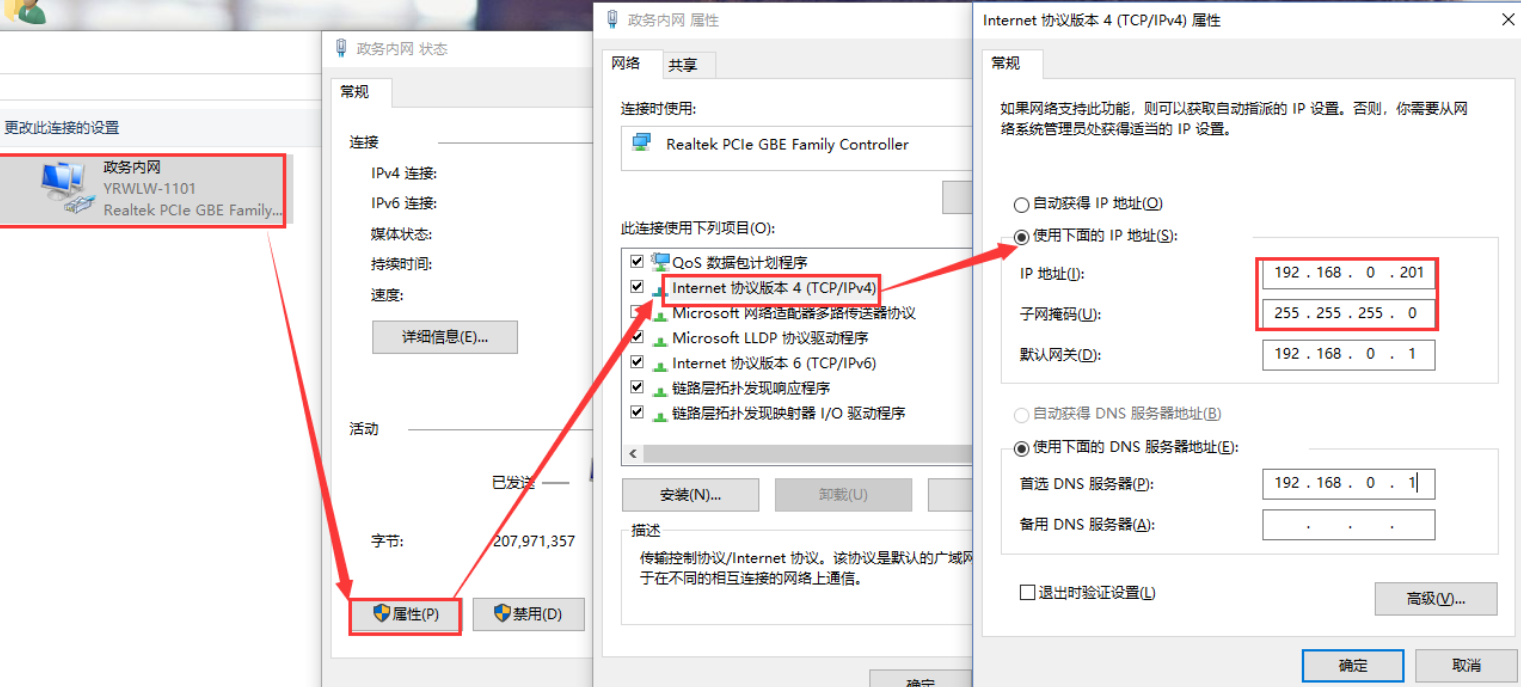 2. 給電腦設置靜態IP,要與510的IP在同一個網段.設置——網絡和共享中心——更改適配器設置——右擊屬性——Internet協議版本4