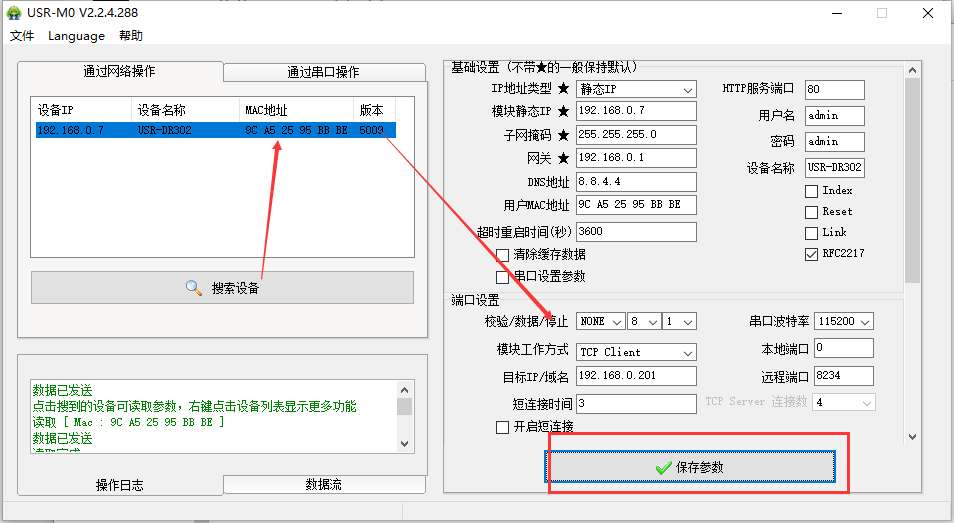 說明書:http://www.0575400.com/Down/USR-DR302_V1.0.1.pdf