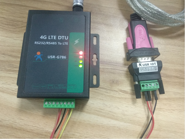 硬件連接:使用串口(485或者232)轉USB線將USR-G786與電腦連接起來,USR-G786卡槽內插入可以上網的SIM卡。