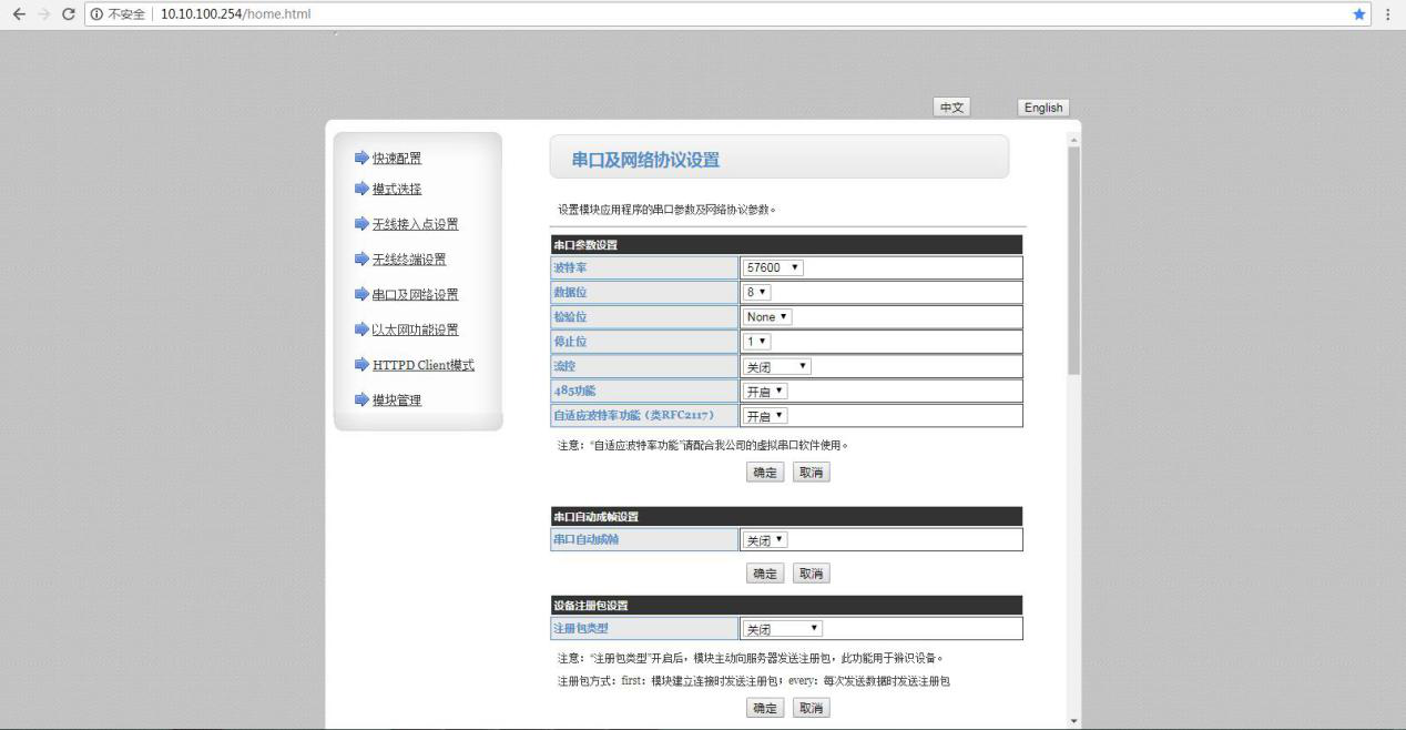 USR-DR404默認IP是10.10.100.254,用這個IP,在瀏覽器輸入,進入USR-DR404的內置網頁,可以對DR404進行參數查看和參數配置。登錄用戶名和密碼都是admin。