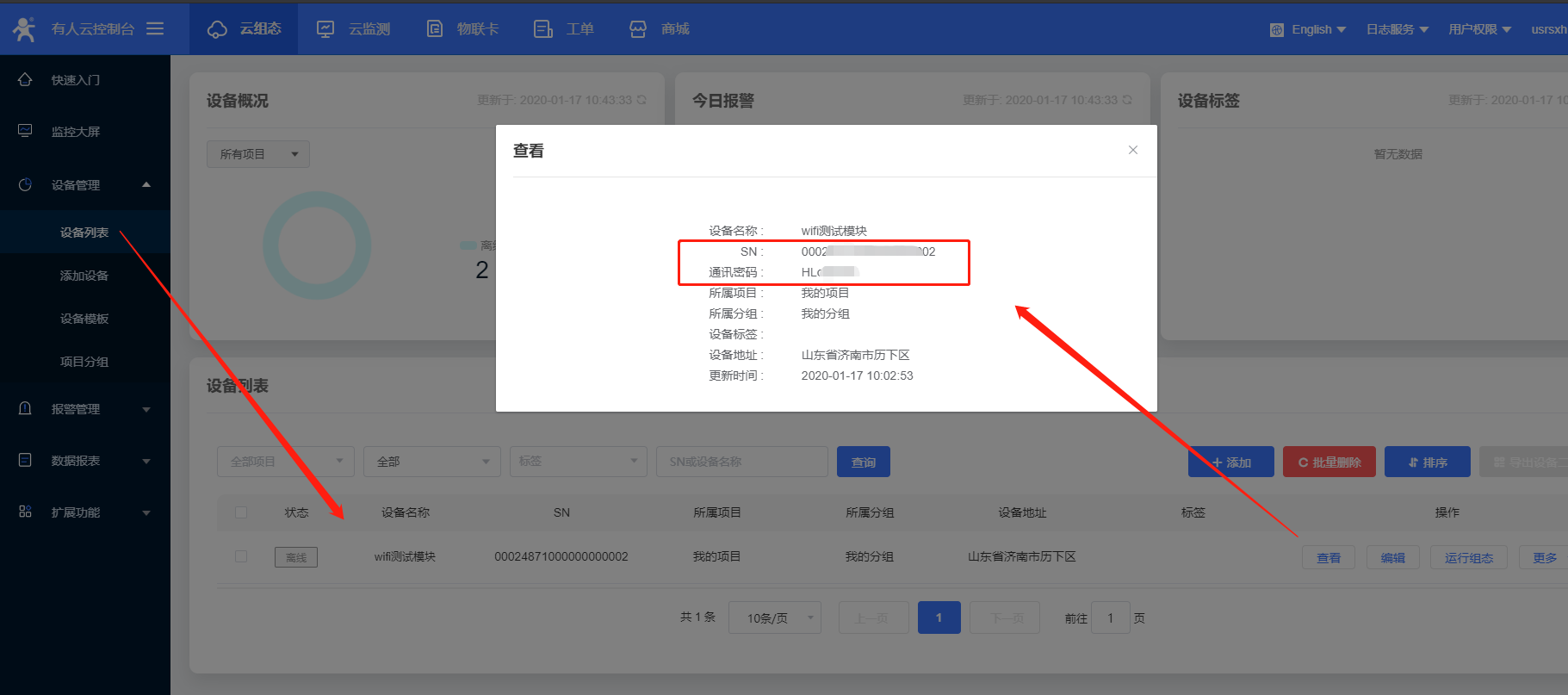 15、設置完所有的參數要重啟設備,稍等一會,在有人云界面,您會看到設備已經上線