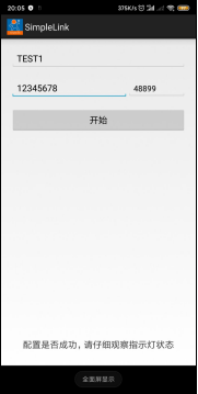 (4) 打開Simplelink APP,輸入wifi密碼端口號:48899,拉低模塊 Reload 引腳 1-3 秒,則模塊進入 Simplelink 配置,模塊不斷檢測接收的數據包,成功解析出接收到廣播包的 SSID 和密碼后,模塊主動去連接 AP。