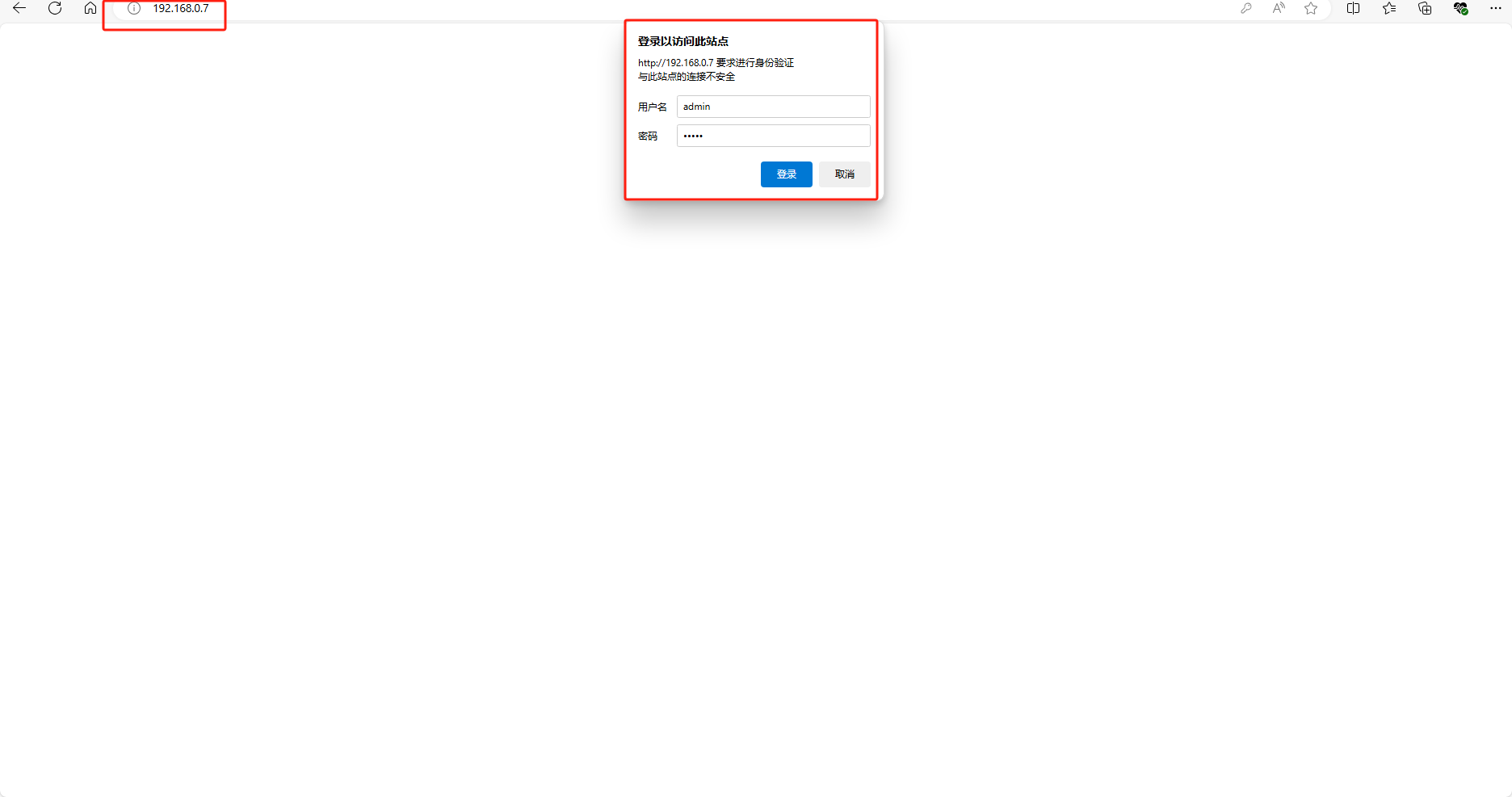 打開瀏覽器,輸入192.168.0.7,賬號admin,密碼admin,進入設備內置網頁