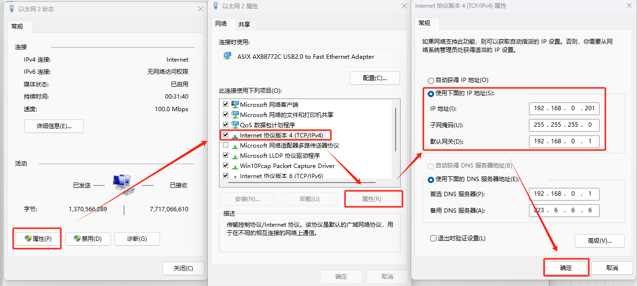 USR-N540-H7出廠默認靜態IP192.168.0.7,電腦需要設置同網段,將電腦IP設置為192.168.0.201,禁用其他網卡