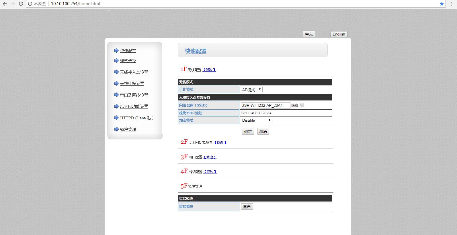 備注:內置網頁設置參數,必須點擊確定保存,重啟生效,建議所有網頁參數設置完畢之后,最后再重啟USR-W610。