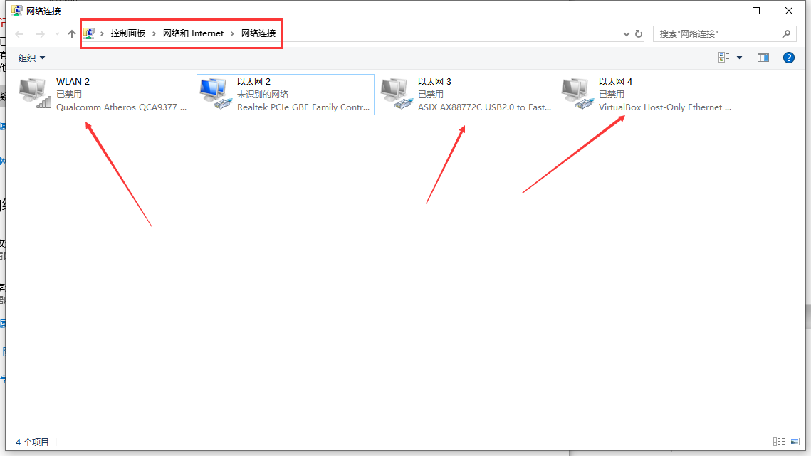 到“windows防火墻”和“更改適配器設(shè)置”選項(xiàng),關(guān)閉防火墻并禁用與本次測試無關(guān)的網(wǎng)卡,并關(guān)閉電腦殺毒軟件。