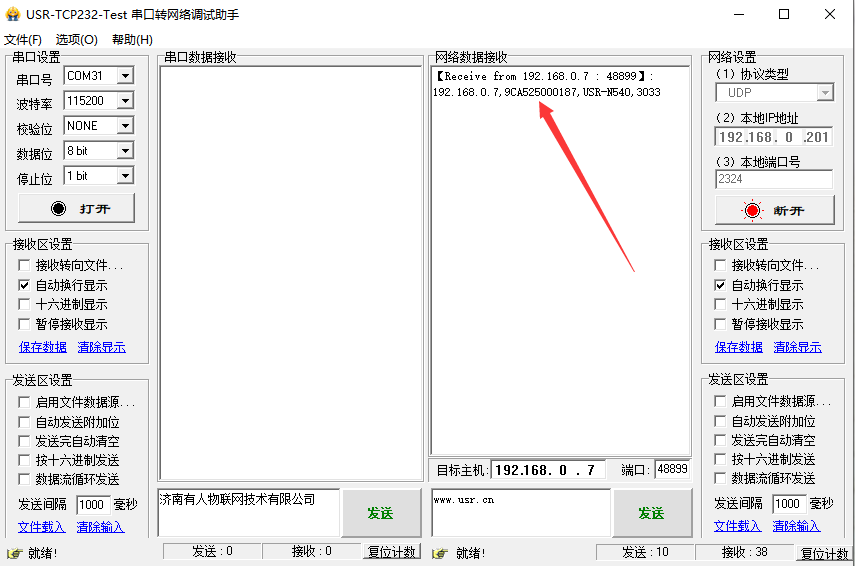 工業(yè)級四串口服務(wù)器USR-N540基本測試通信和使用方案http://www.0575400.com/Faq/237.html