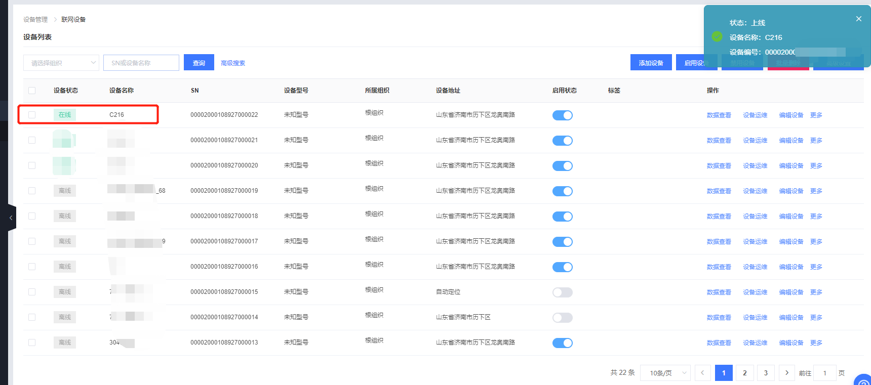 13. 設置完所有的參數要重啟設備,稍等一會,在有人云界面,您會看到設備已經上線。