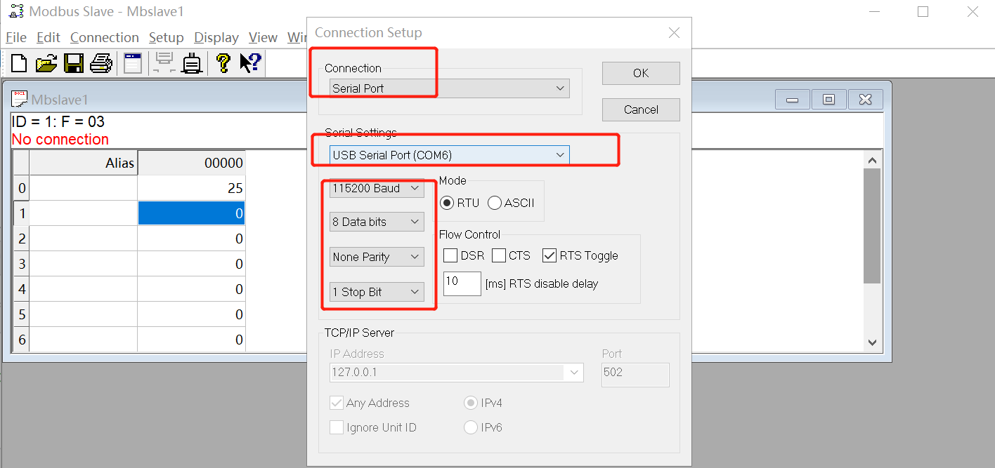 本案例測試說明:用modbus slave軟件模擬modbus rtu協議的串口設備;