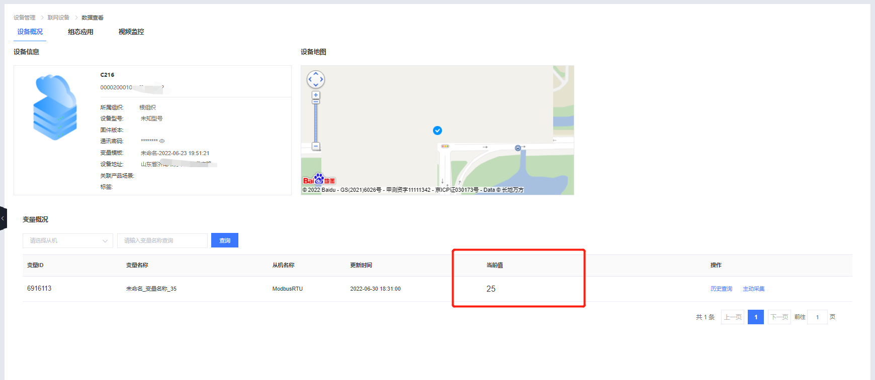 15.有人云可以看到216上報的數據,數據采集頻率在前面配置的是1分鐘,所以數據會1分鐘采集一次,也可以點擊更多 --- “主動采集”,直接采集數據。