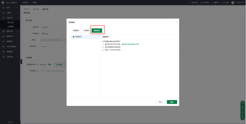 5>附加功能--注冊(cè)包--開(kāi)啟--類(lèi)型選擇cloud,將之前云端添加的C210的設(shè)備ID和密碼填寫(xiě)到注冊(cè)包里