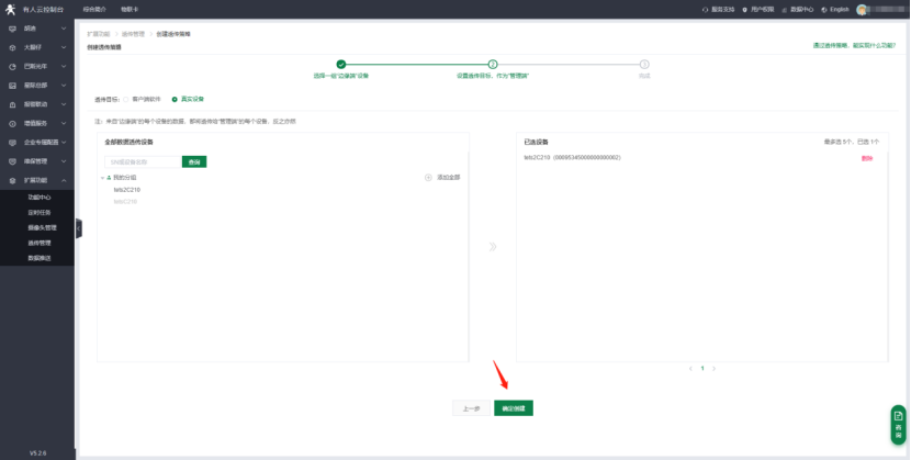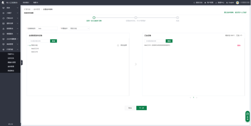9>邊緣端設(shè)備:選擇剛才添加的“testC210”這個(gè)設(shè)備,點(diǎn)擊下一步