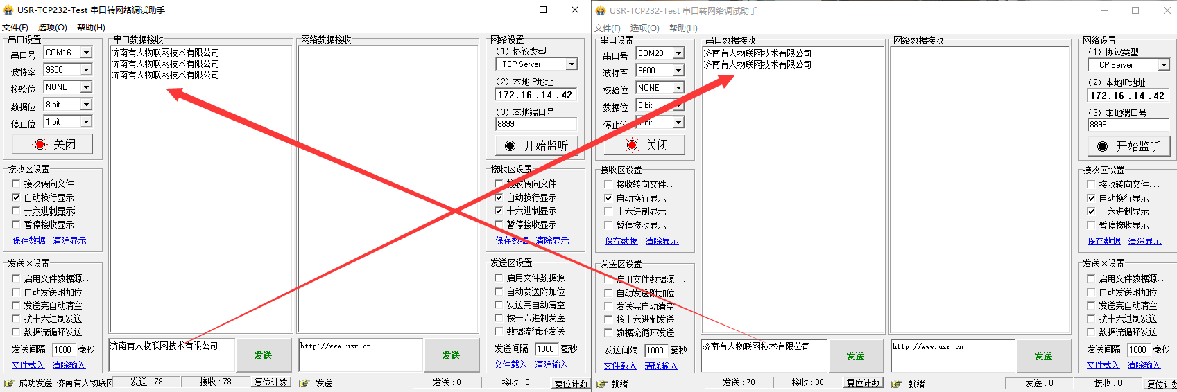 USR-W600的基本通訊測試:http://www.0575400.com/Faq/310.html