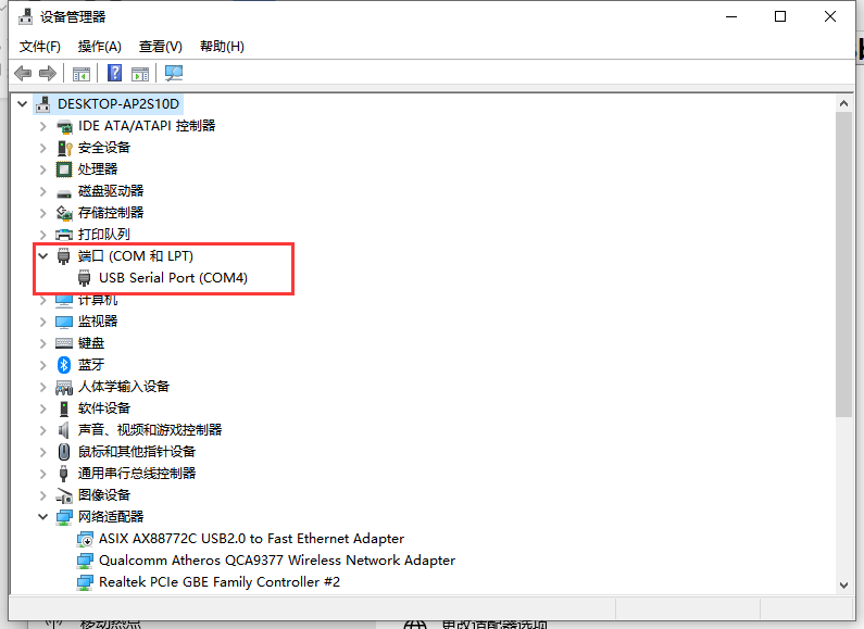 串口號可以在“設備管理器-端口”處查看。