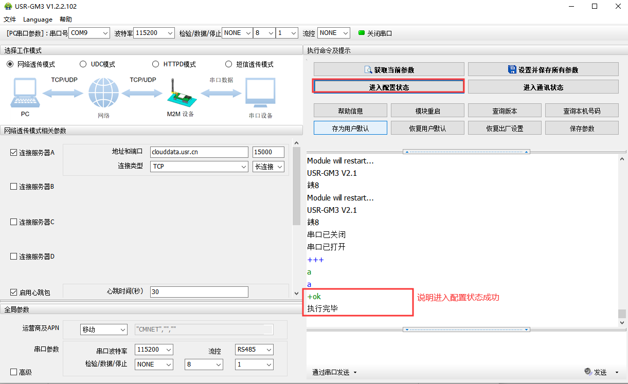 7.打開兩個USR-TCp232-TEST網(wǎng)絡(luò)助手,左側(cè)串口部分用COM9和虛擬串口COM1打開,串口參數(shù)和730設(shè)置一致。然后用兩個USR-TCp232-TEST測試串口和虛擬串口之間的數(shù)據(jù)傳輸。