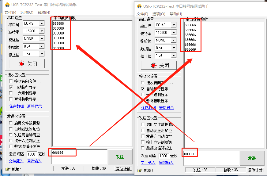 同時(shí)打開兩個(gè)串口轉(zhuǎn)網(wǎng)絡(luò)助手軟件。一個(gè)選擇虛擬串口,一個(gè)選擇COM3,即可進(jìn)行收發(fā)測(cè)試