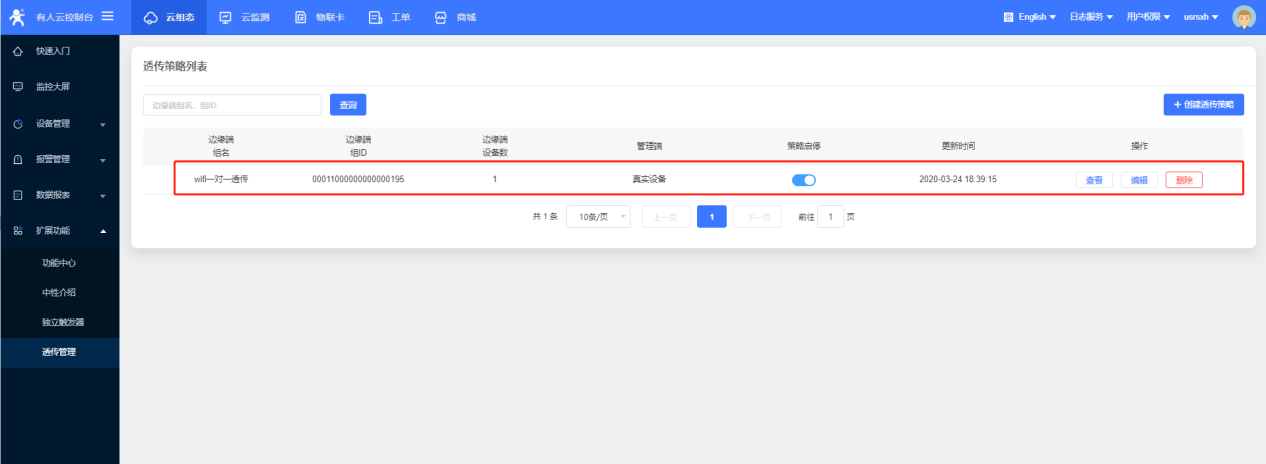 11、在“擴展功能”-“功能中心”選擇開通“透傳管理”功能;
