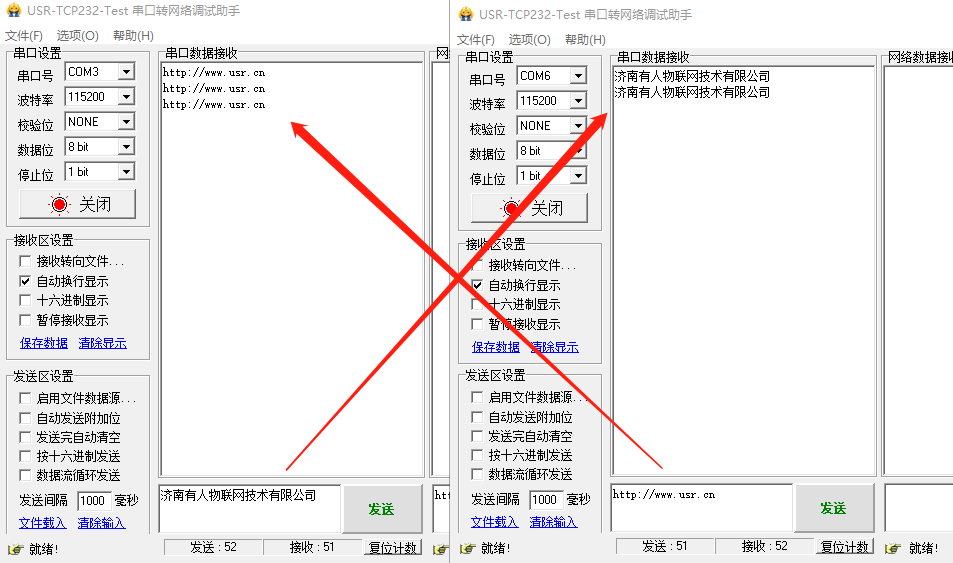 數據流向:PC端串口調試軟件----1號C215-----有人云透傳組----2號C215---PC端串口調試軟件