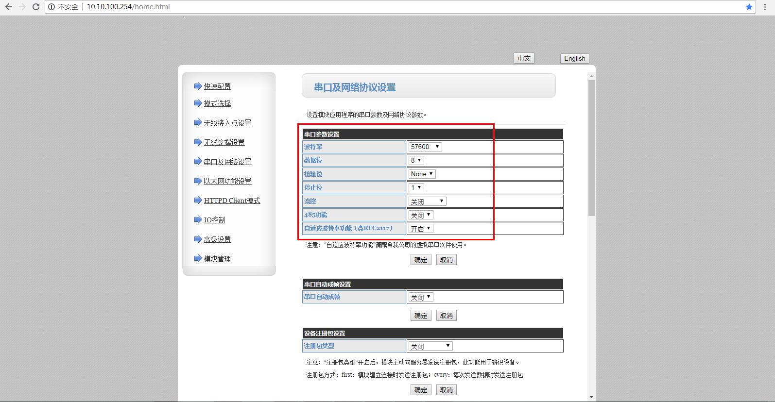 USR-WIFI232-B2默認串口參數是57600,NONE,8,1