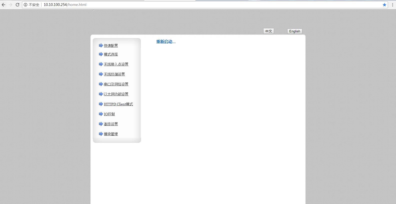 USR-WIFI232-B2默認Ip是10.10.100.254,用這個Ip,在瀏覽器輸入,進入USR-WIFI232-B2的內置網頁,可以對B2模塊進行參數查看和參數配置。登錄用戶名和密碼都是admin。
