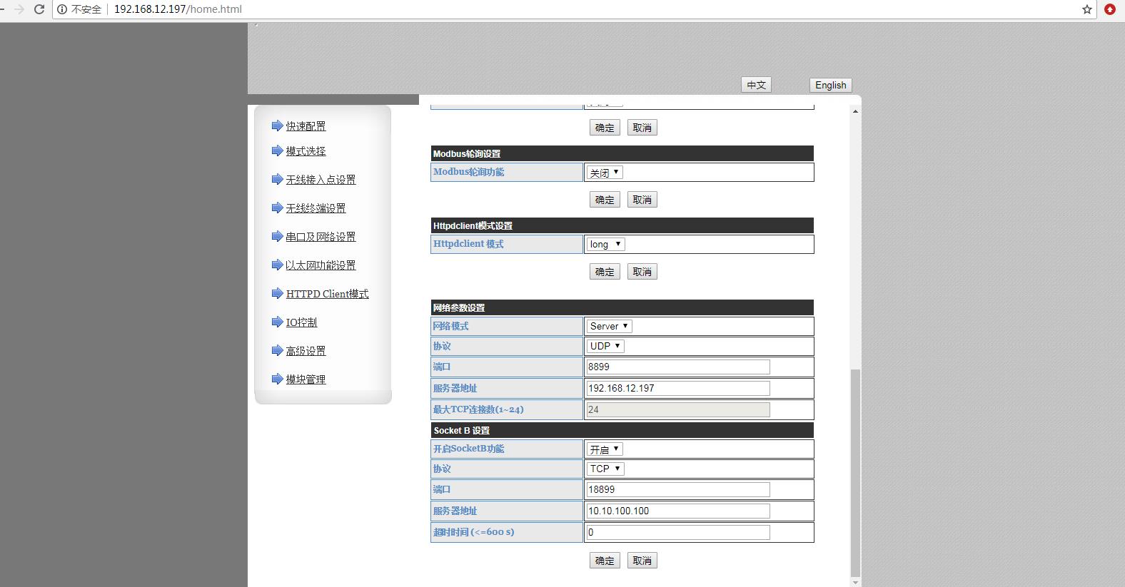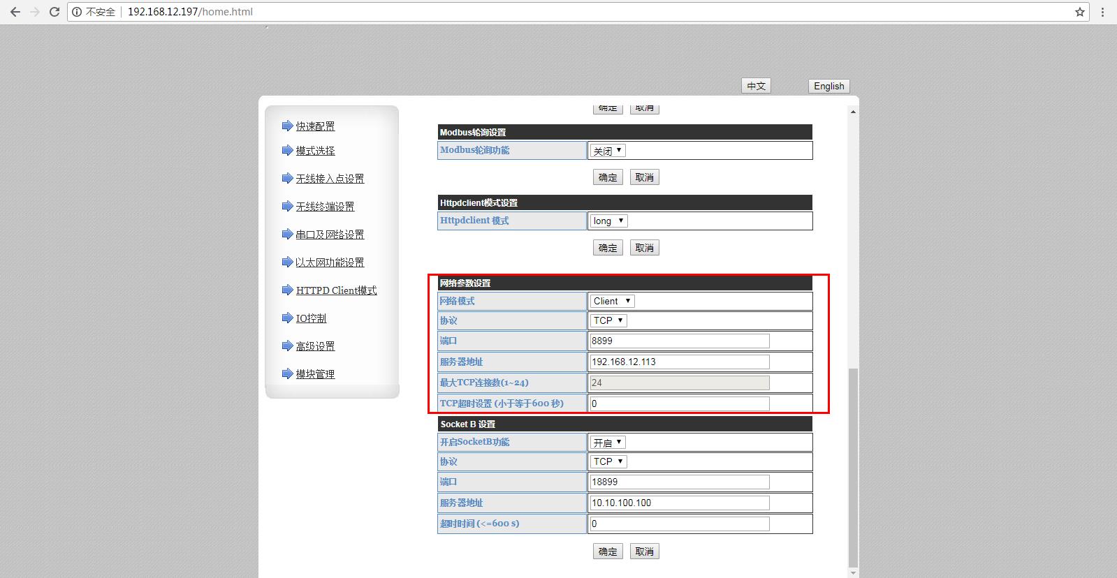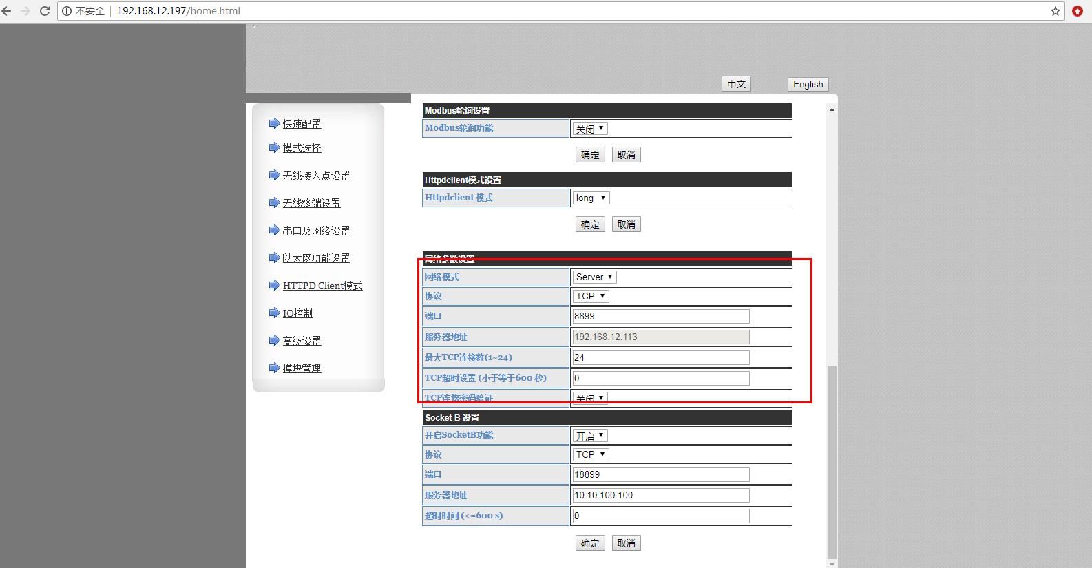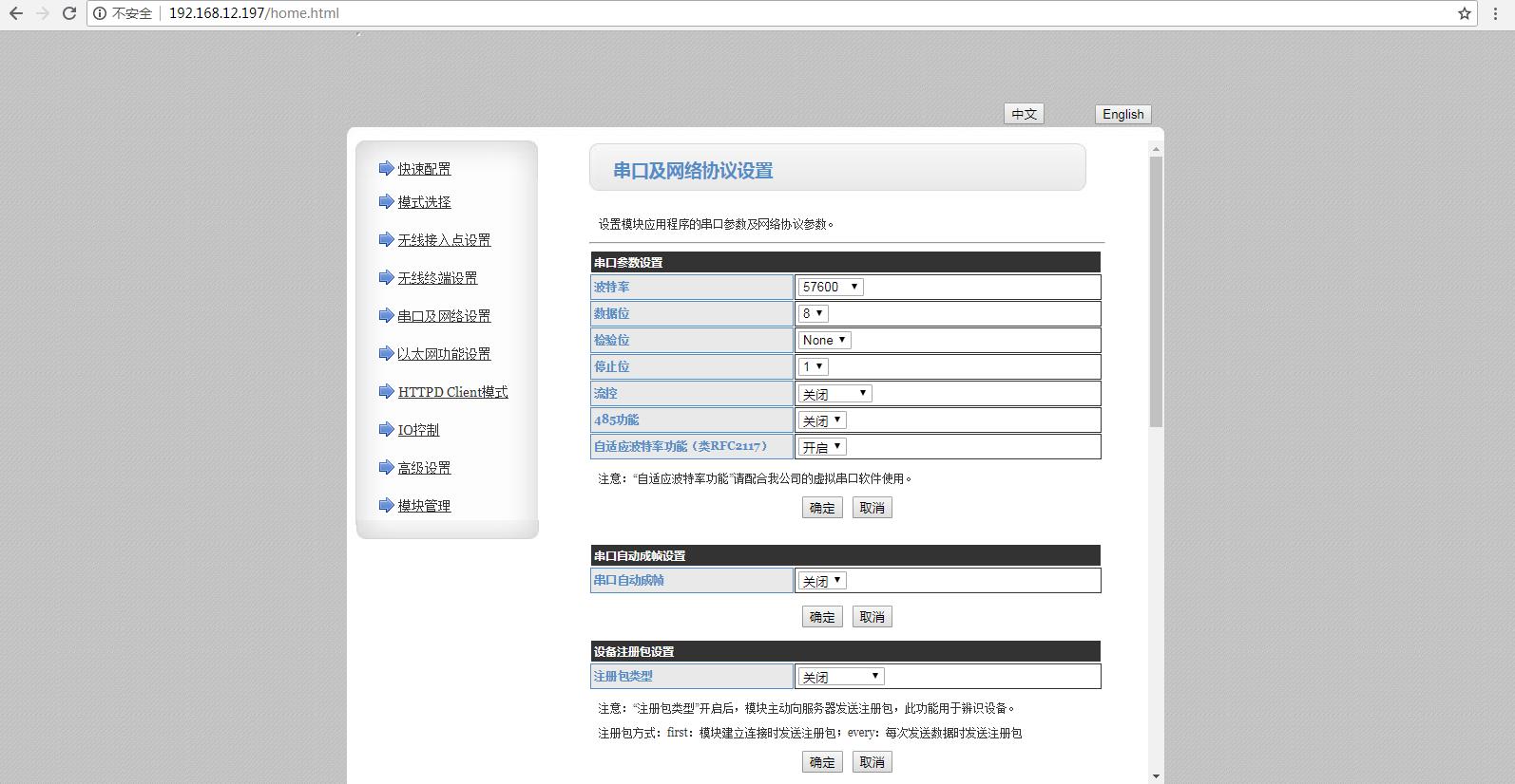 用USR-WIFI232-B2的Ip 登錄USR-WIFI232-B2的網頁,然后修改B2的串口參數。測試4種工作模式下,串口和網絡的數據透傳。