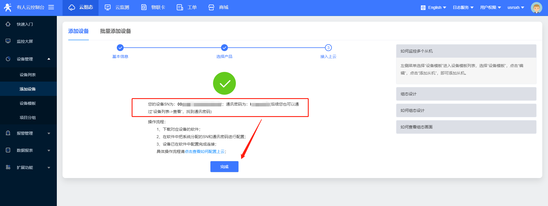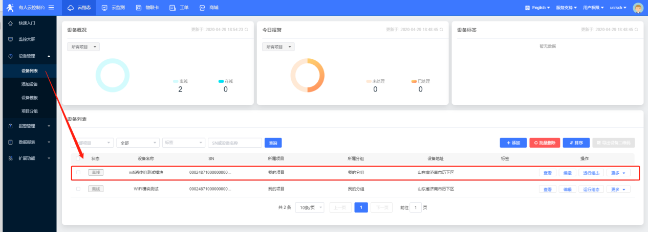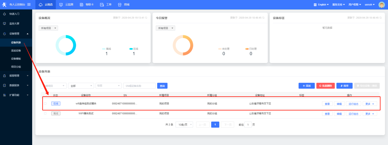 15、設置完所有的參數要重啟設備,稍等一會,在有人云界面,您會看到設備已經上線。