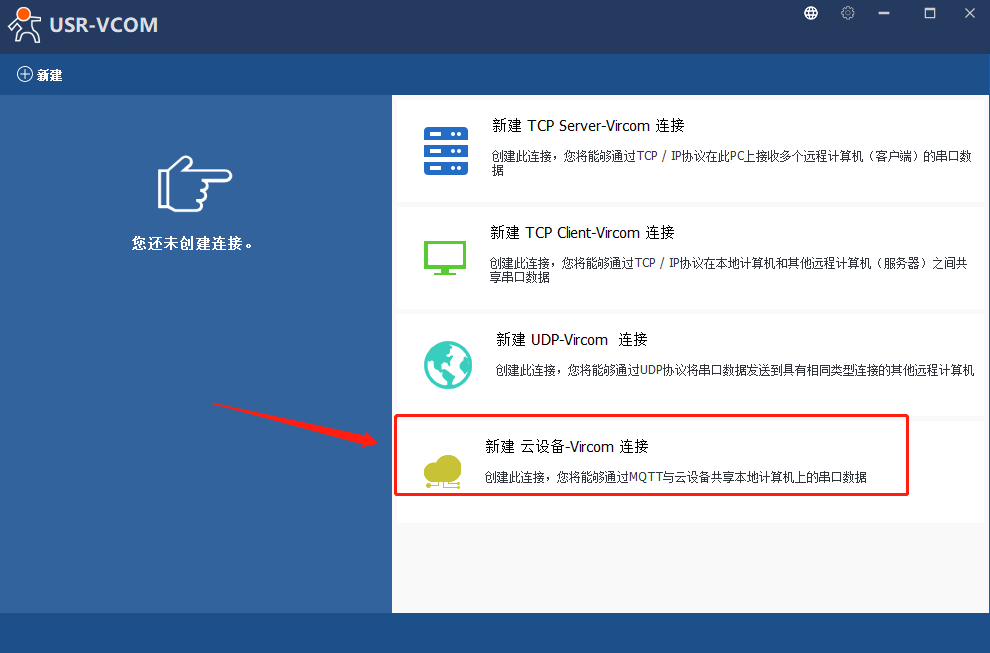 16、打開下載好的VCOM軟件,點擊 新建云設備。