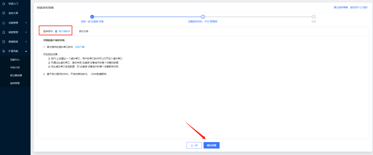 21、透傳目標選擇客戶端軟件,點擊確認創建。