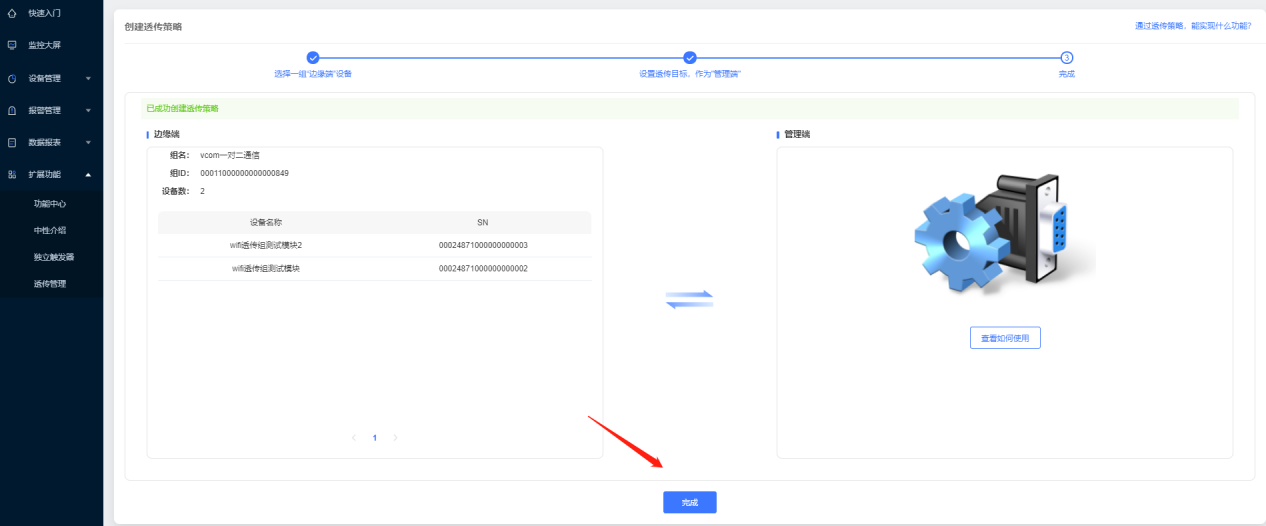 22、點擊完成,可以在透傳策略列表中看到新創建的透傳策略。