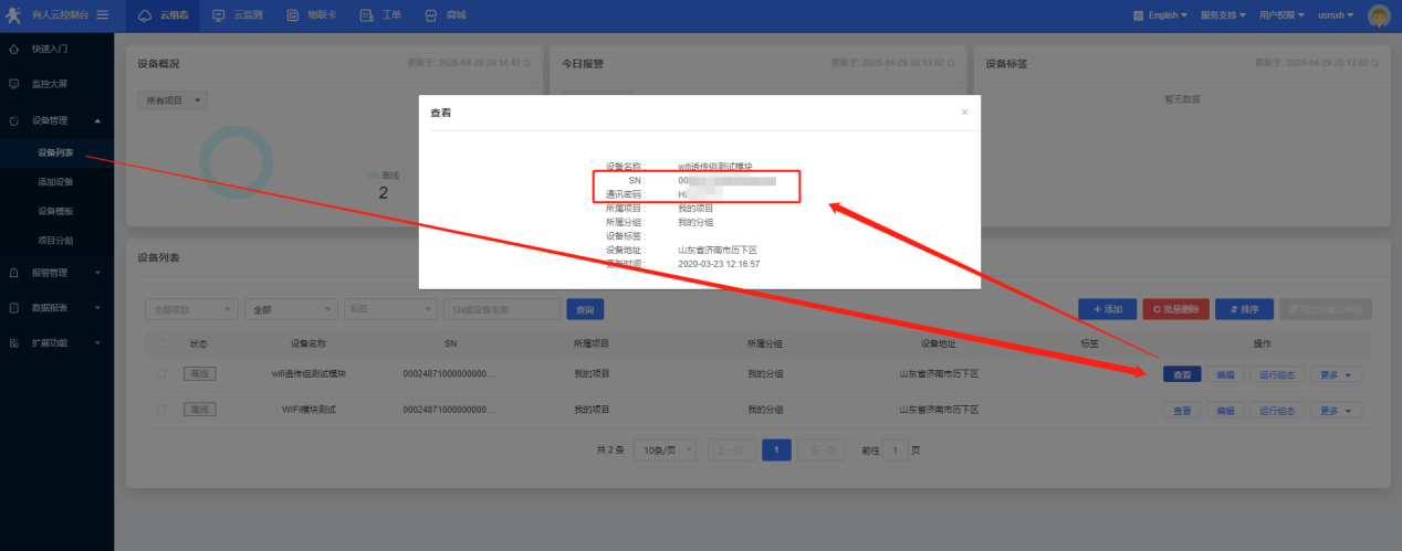 14、設置完所有的參數要重啟C322設備,稍等一會,在有人云界面,您會看到設備已經上線。