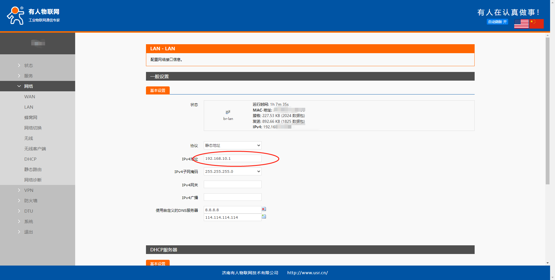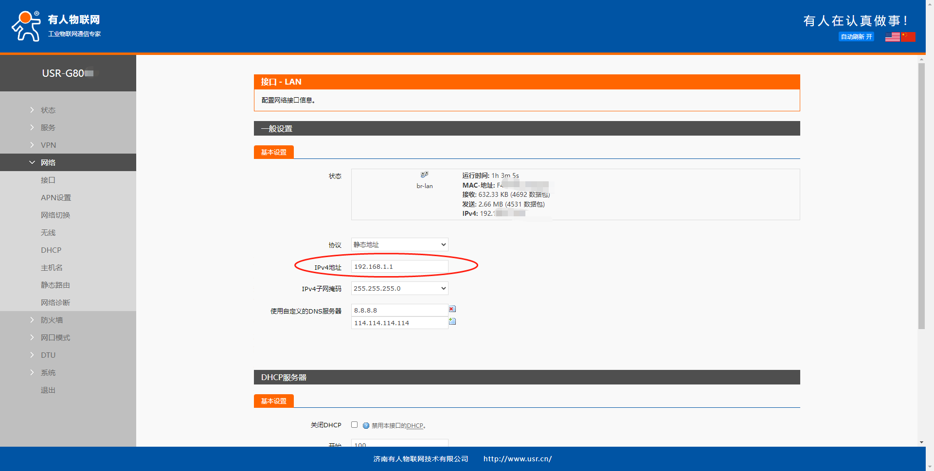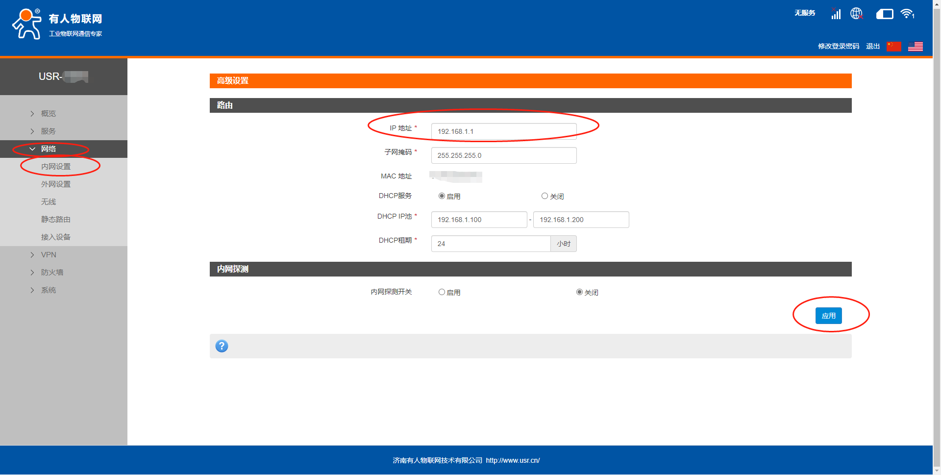 G805(包括RM02、RM03、DR801)系列:網絡--內網設置--IP地址--應用
