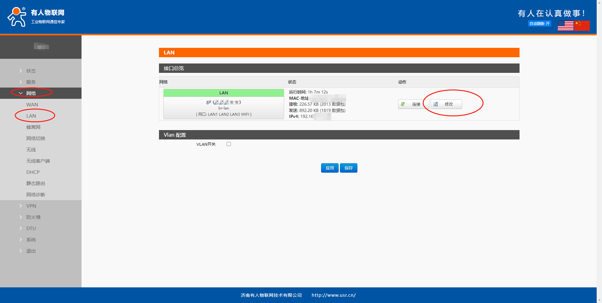 G817:網絡--LAN--修改--IPV4地址--應用