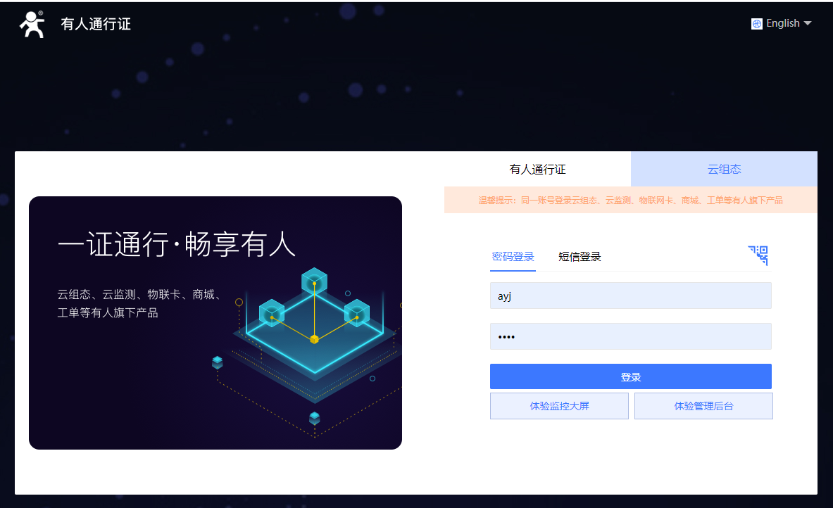 1、登錄有人云(如果沒有賬號先申請通行證,目前只能通過手機號來注冊通行證賬戶)