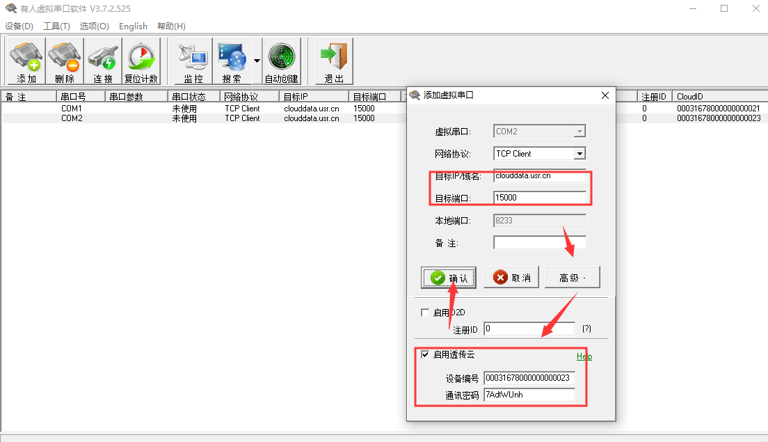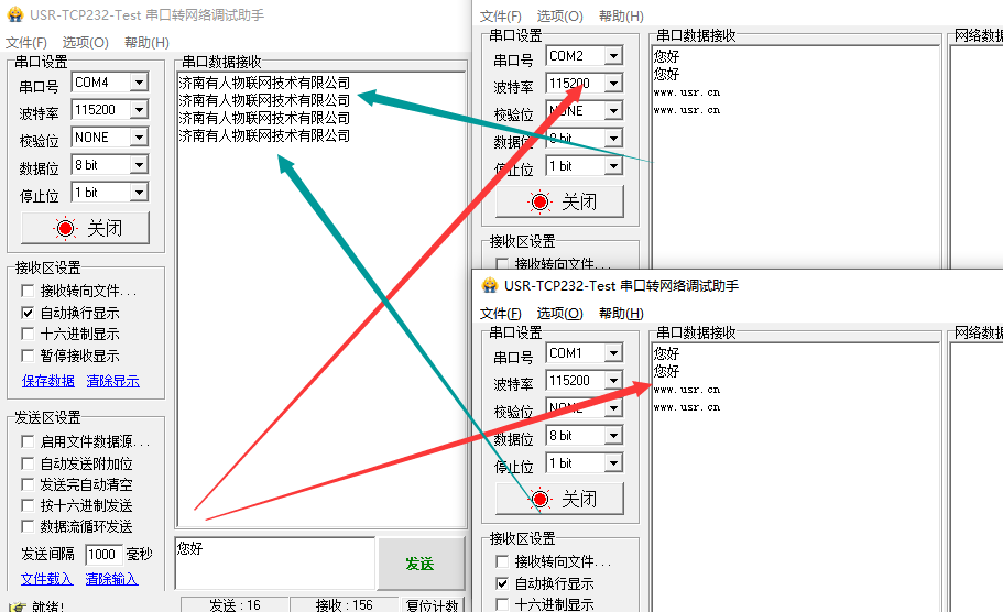 然后用兩個USR-TCp232-TEST測試串口和虛擬串口之間的數據傳輸。