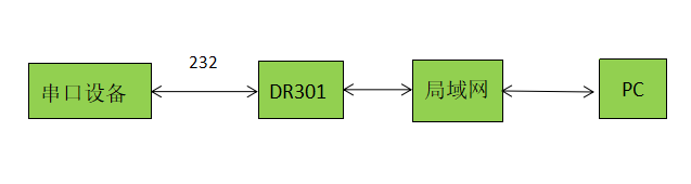 1、將串口服務器(USR-DR301,簡稱301)的串口通過串口線(或USB 轉串口線)與pC相連接,通過網線將301的網口pC的網口相連接,檢測硬件連接無錯誤后,接入我們配送的電源適配器,給301供電。